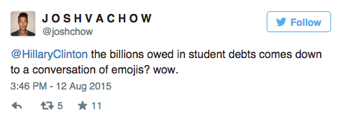 In Clinton's latest Instagram post, she asks her followers how student loan debt makes them feel -- but she asks them to describe it using emojis, the Japanese smileys which come fully equipped on nearly every modern smartphone.