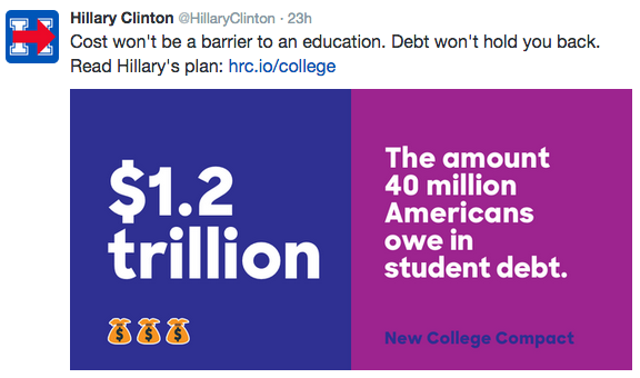 It all began when Clinton tweeted out a photo promoting her policy on student debt. Clinton had taken to other social networks Monday to discuss the importance of remedying the overwhelming problem of student loans.