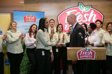 Gov. Rick Scott was on the jobs trail on Tuesday, heading to Orlando to announce the relocation of retail salad producer Fresh Express and top banana retailer Chiquita to the Sunshine State.