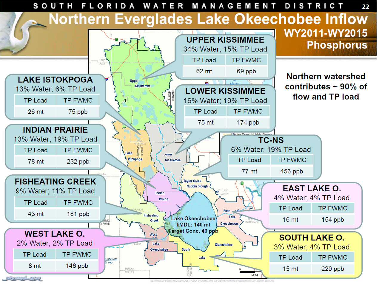 "The problem is that while some phosphorus sources, such as farms, are targeted and addressed and have made progress, new sources of phosphorus have entered the watershed. Those new sources come in the form of the human population of the South Florida Water Management District, which has more than doubled in the past 30 years."