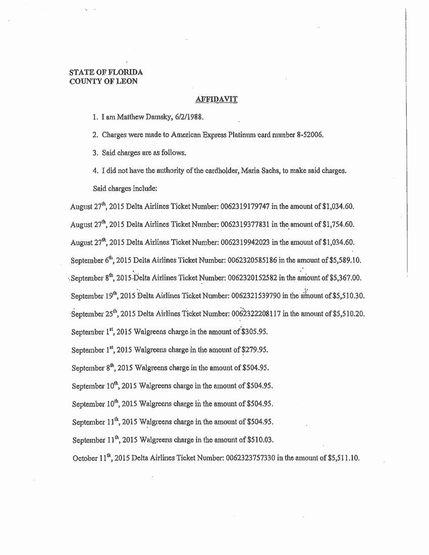Early in 2016, I first learned that a member of my staff in the Florida Senate, Matthew Damsky, had engaged in a protracted pattern of abusing his position and our trust to fraudulently obtain compensation and purchases of products and services.